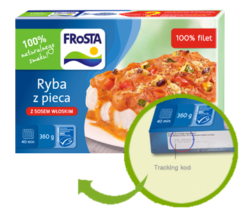 FISH TRACKING kod składa się z ciągu 10 cyfr i liter. Znajduje się w polu kodowym opakowania bezpośrednio pod datą ważności.